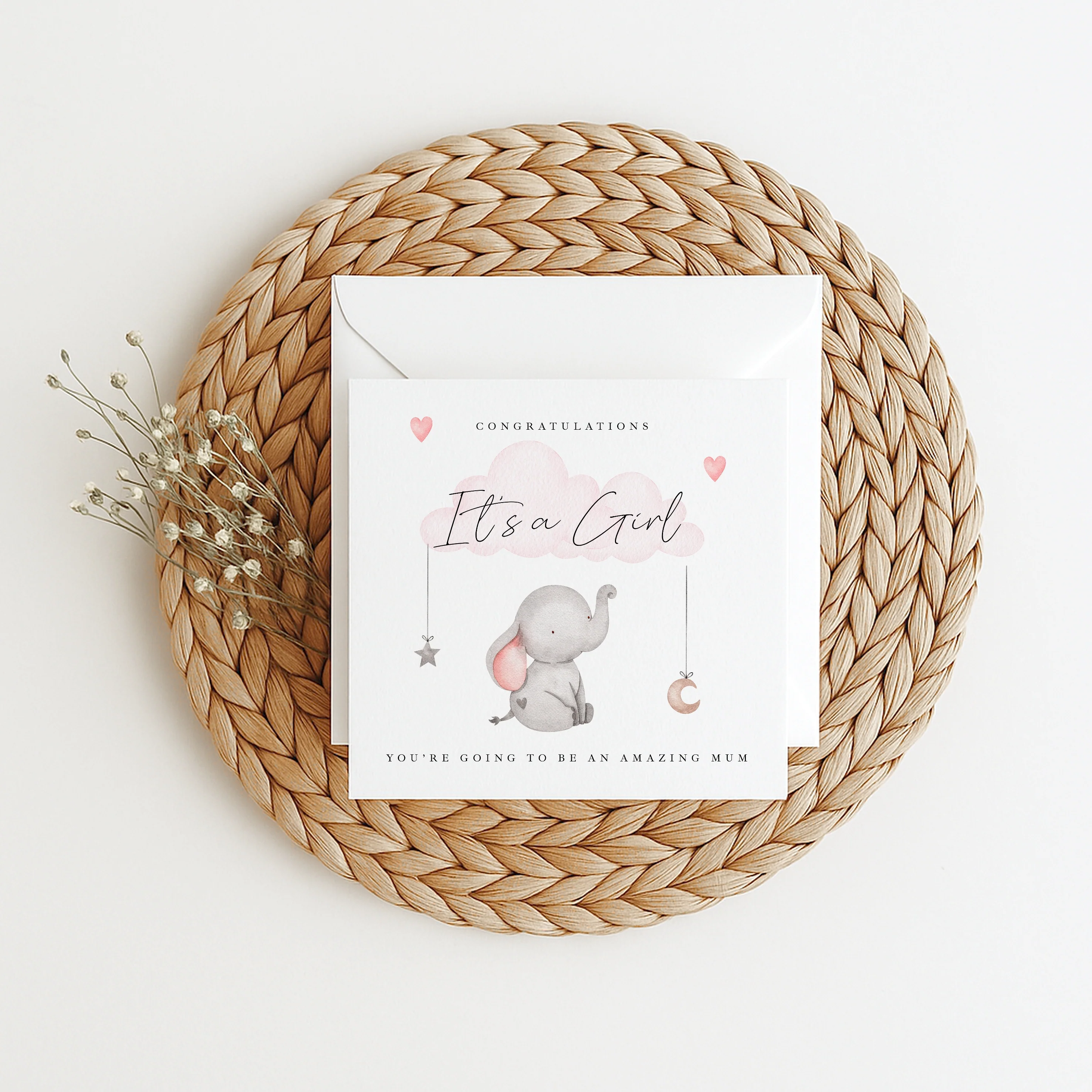 Grey Elephant, It's a Girl Baby Shower Card