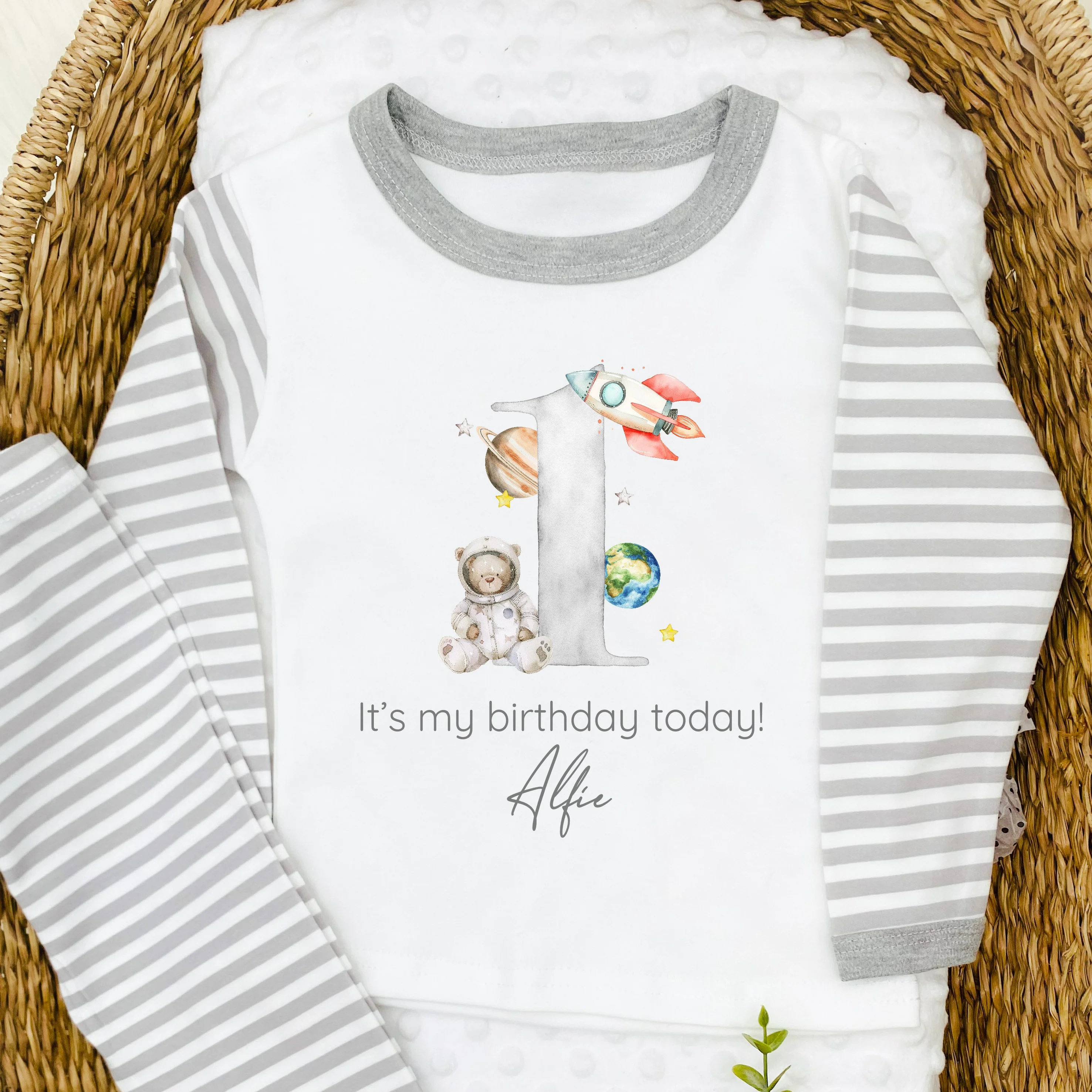Personalised Space Grey Stripe Boys Birthday Pyjamas