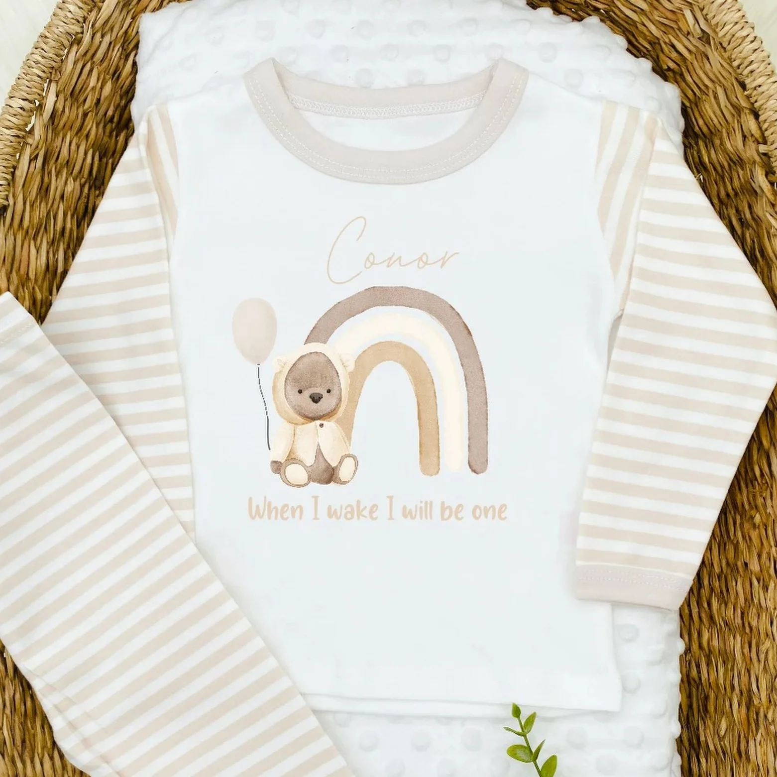 Personalised Teddy Bear Rainbow Beige Unisex Birthday Pyjamas