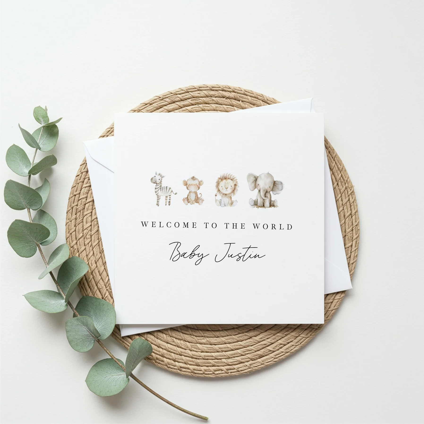 Personalised Water Colour Safari Baby Shower Card